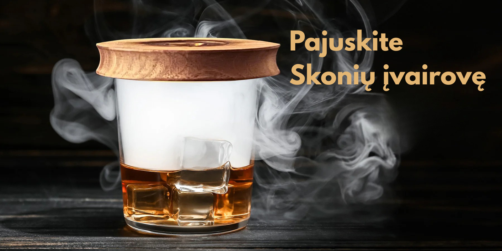 Na ir paskutinis žingsnis – dūmo skonio suteikimas. Galime pasiūlyti 8 skirtingus aromatus – medžio drožles, kurias įbėrus į viskio rūkyklą ir padeginus – suteiksite viskiui nepakartojamą skonį.