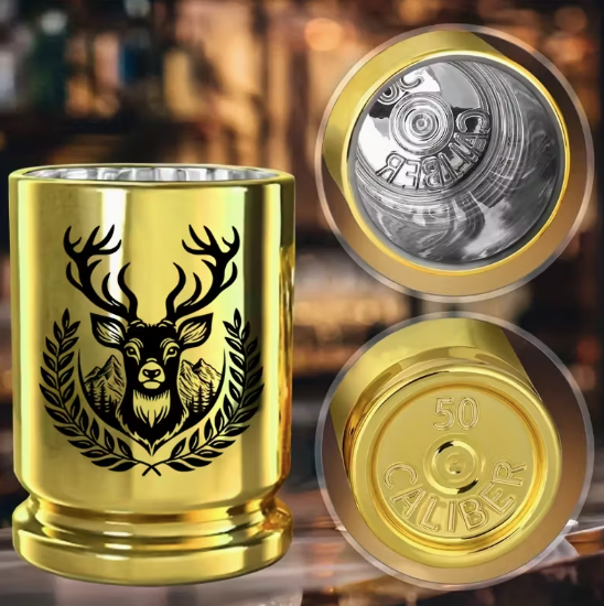 Stilingi ir išskirtinio dizaino stikliukai, primenantys 50 kalibro gilzes, puikiai tinka šventėms, išvykoms ar dovanai medžioklės mėgėjui. Aukso spalvos paviršius ir juodas elnio motyvas suteikia jiems išskirtinumo ir solidumo. Pagaminti iš tvirto plastiko – lengvi, patvarūs ir saugūs naudoti tiek namuose, tiek gamtoje.