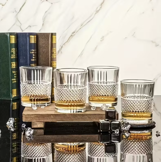 Išskirtinio dizaino klasikinės viskio taurės sukurtos tam, kad galėtumėte mėgautis savo mėgstamais gėrimais stilingai. „Old Fashioned“ formos stiklas patogiai guli rankoje, o elegantiškas raštuotas pagrindas suteikia prabangos pojūtį ir puošia stalą.