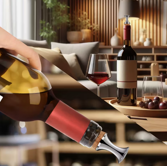 Elegantiškas butelio uždarytuvas, pagamintas iš natūralaus kamščio ir nerūdijančio plieno. Puikiai tinka vyno, viskio, konjako, šampano, aliejaus ar kitų gėrimų buteliams sandariai uždaryti, kad gėrimas ilgiau išliktų šviežias.