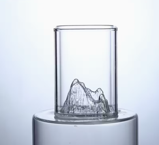 Dizainas: Kvadratinė taurė su kalnų formos dugnu – moderni ir išskirtinė detalė