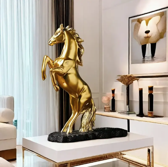 Prabangi ir išraiškinga auksinė arklio statulėlė, simbolizuojanti jėgą, laisvę ir sėkmę. Tai išskirtinis interjero akcentas, kuris suteiks jūsų namams elegancijos ir modernumo pojūtį.